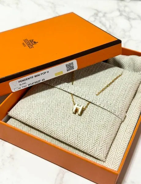 ❤️Hermes Mini Pop H Blanc Gold Necklace Pendant❤️