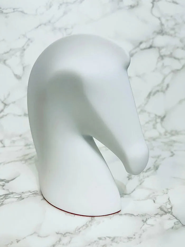 Horse paperweight in white biscuit porcelain with goatskin base