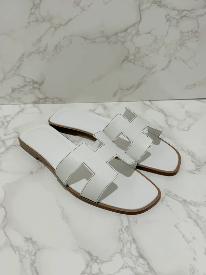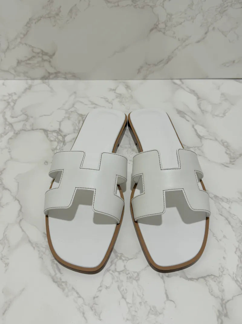 Hermes Oran Sandales Blanc Piqures H 39